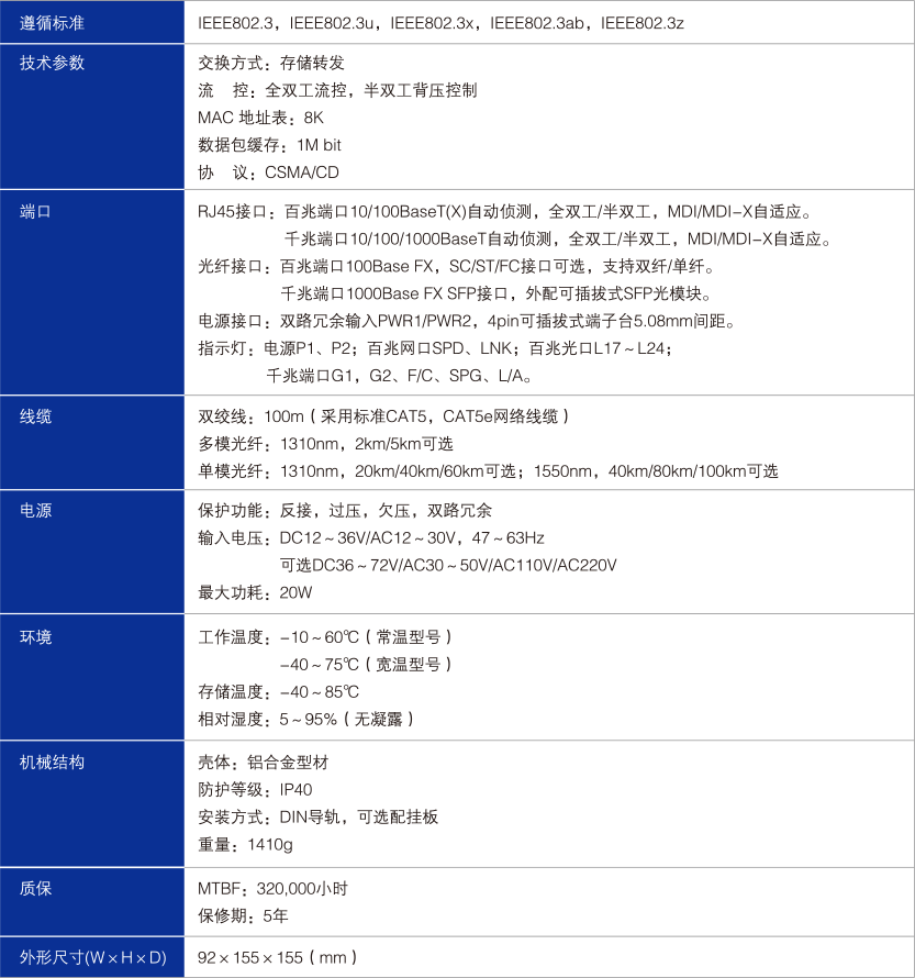 遵循IEEE802.3,IEEE802.3u,IEEE802.3x,IEEE802.3ab,IEEE802.3z標準