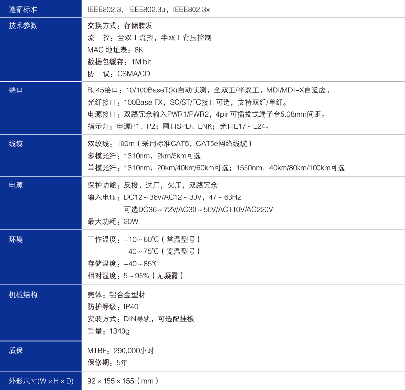 配置24個百兆端口,光電可自由組合