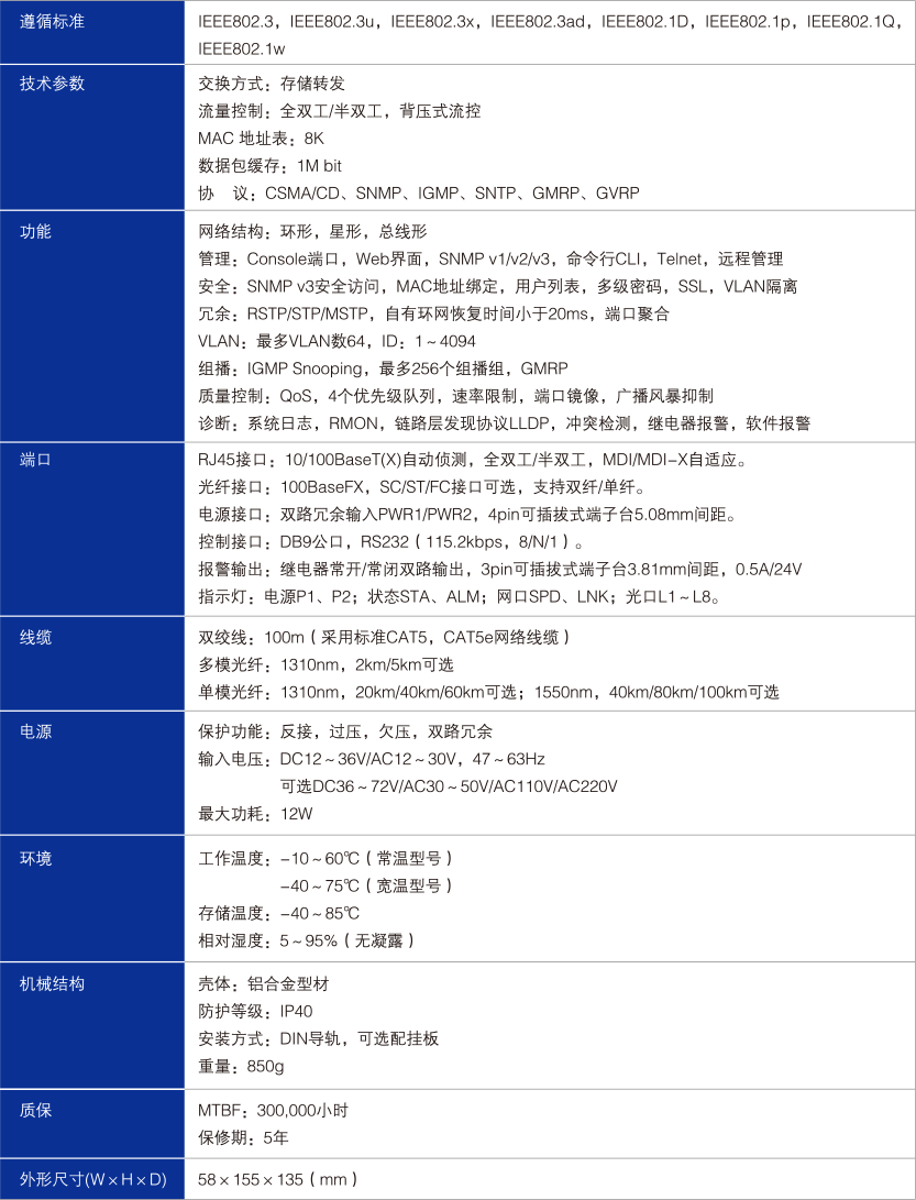 支持環網冗餘技術,自愈環網恢複時間小於20ms,增加工業網絡係統的可靠性