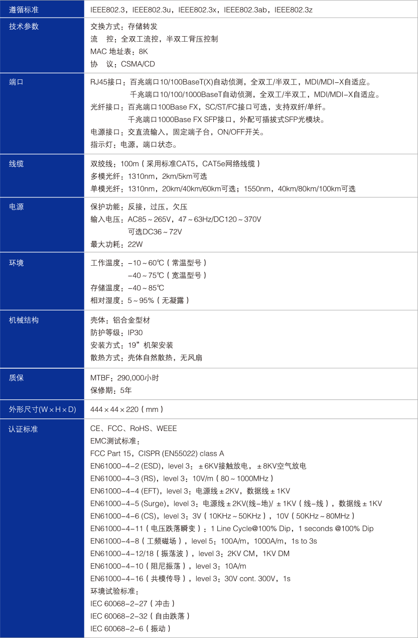 遵循IEEE802.3,IEEE802.3u,IEEE802.3x,IEEE802.3ab,IEEE802.3z標準