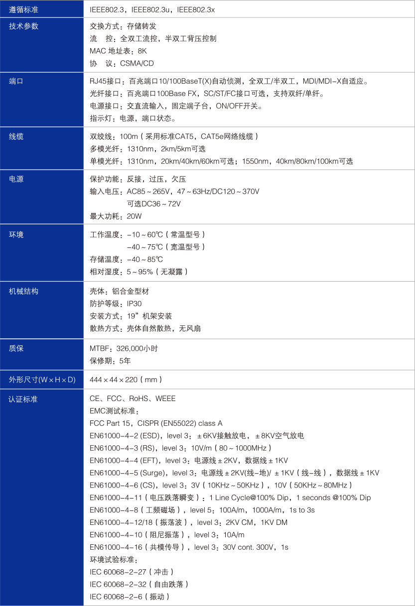 遵循IEEE802.3,IEEE802.3u,IEEE802.3x標準