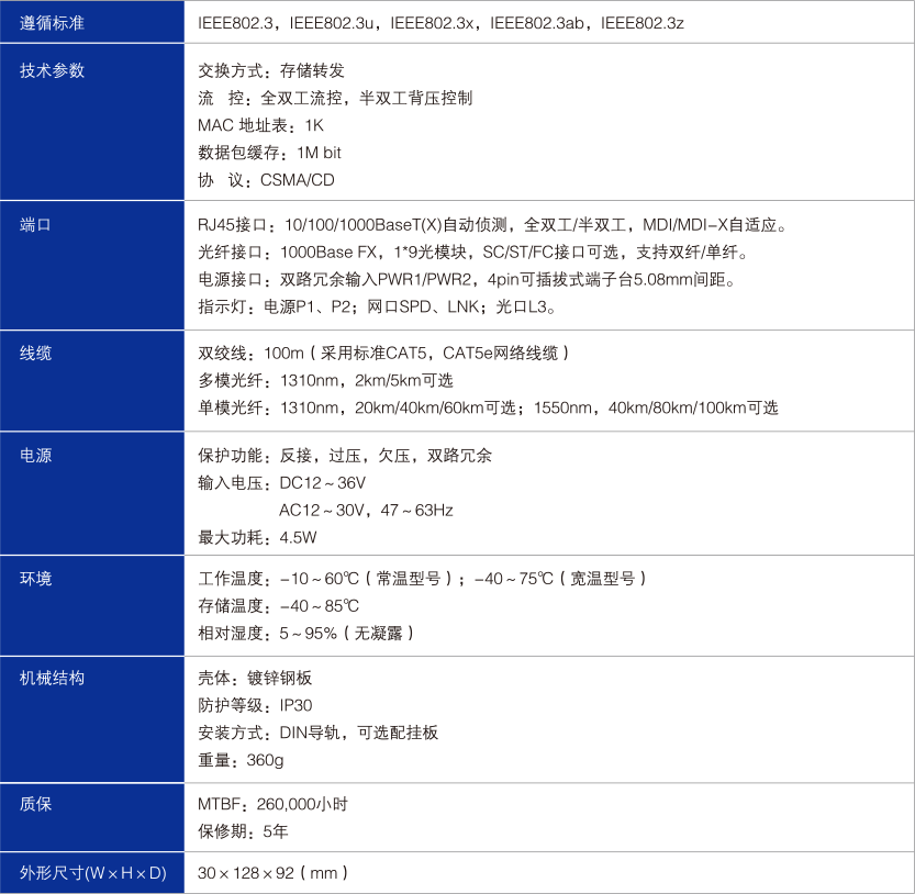 遵循IEEE802.3,IEEE802.3u,IEEE802.3x,IEEE802.3ab,IEEE802.3z標準