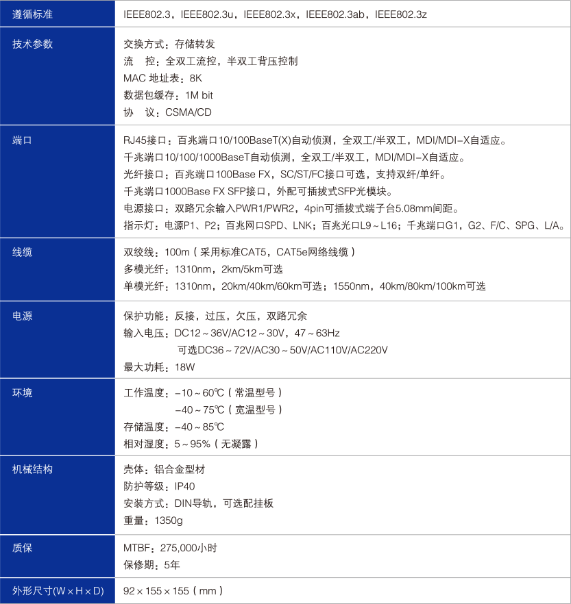 遵循IEEE802.3,IEEE802.3u, IEEE802.3ab,IEEE802.3z