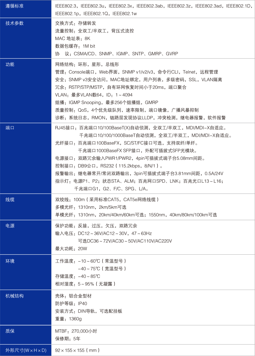 支持千兆冗餘環網技術,增加工業網絡係統的可靠性