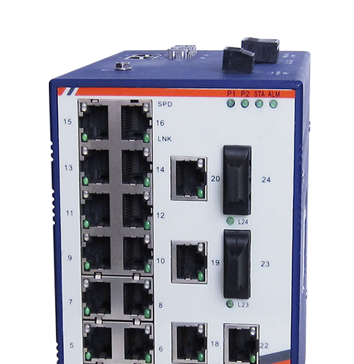 支持環網冗餘技術,自愈環網恢複時間小於20ms,增加工業網絡係統的可靠性