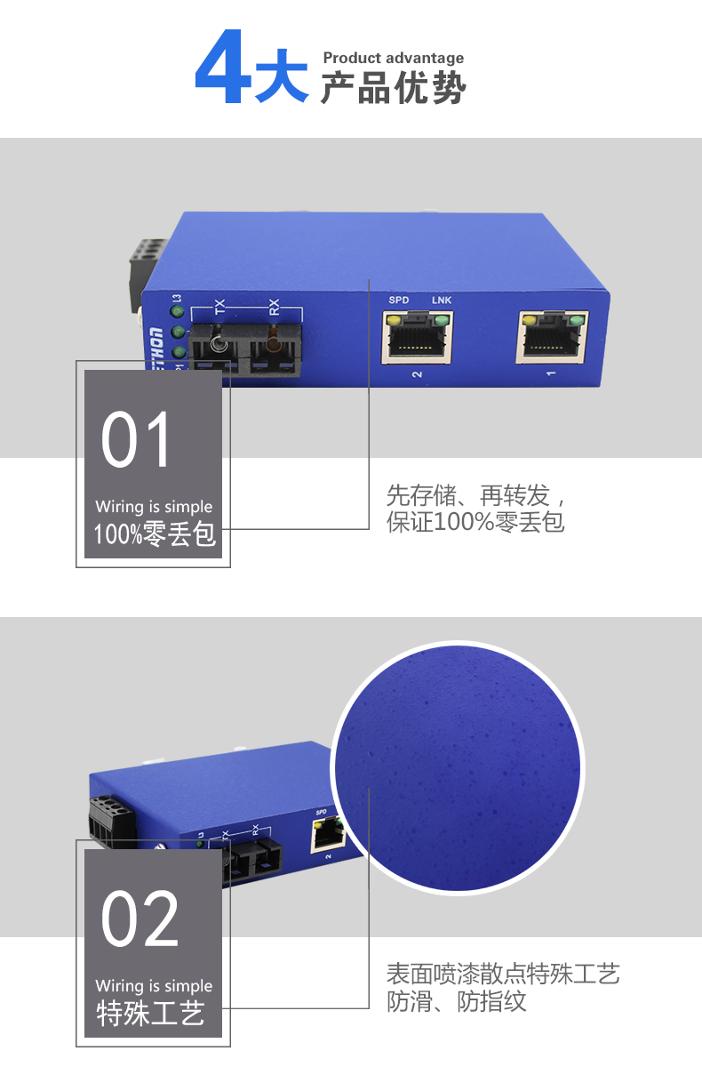 ESD103是一款1光2電dian工gong業ye級ji光guang纖xian收shou發fa器qi,殼ke體ti采cai用yong鍍du鋅xin鋼gang板ban,結jie構gou緊jin湊cou,支zhi持chi兩liang電dian口kou冗rong餘yu配pei置zhi及ji一yi個ge百bai兆zhao光guang纖xian端duan口kou。工gong業ye交jiao換huan機ji按an照zhao嚴yan格ge的de工gong業ye級ji標biao準zhun設she計ji,所suo有you器qi件jian均jun選xuan用yong工gong業ye級ji器qi件jian,具ju有you極ji高gao的de穩wen定ding性xing和he可ke靠kao性xing。DIN導軌安裝,可選配掛板,能夠滿足工業現場的需要。